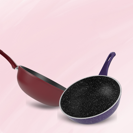 طقم حلل جرانيت الموف مكون من 7 قطع أنيقة تشمل 3 حِلل بأحجام مختلفة و ووك 24 سم. يتميز بطلاء...