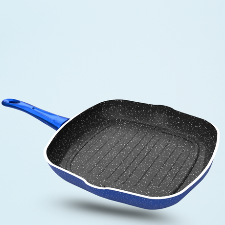 طقم حلل جرانيت الأزرق مكون من 9 قطع تشمل 4 حِلل بأحجام مختلفة وجريل بمقاس 28 سم. مصمم لتحمل الاستخدام...