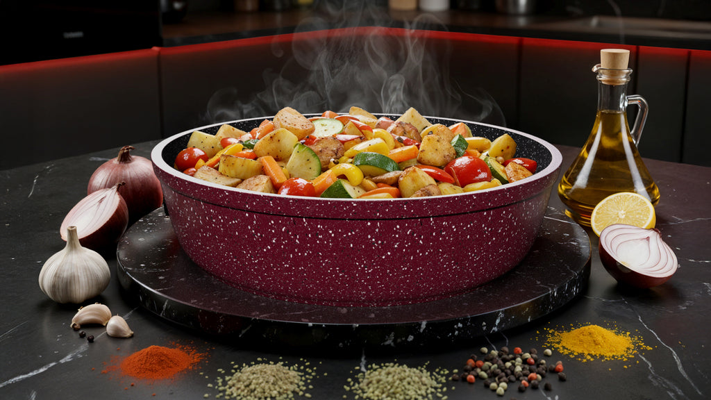 صينية كايا الإيطالية الجرانيت – اللون البوردو تمنح مزيجًا من الأناقة والقوة، مع طبقة جرانيت غير لاصقة تضمن نتائج طهي...