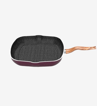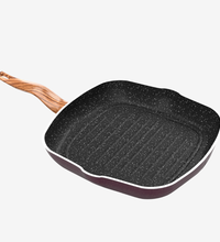 جريل جرانيت 28 سم – اللون البوردو مصنوع من جرانيت قوي غير لاصق، مزوّد بمقبض عازل للحرارة لتسهيل التحكم أثناء الطهي، وقاعدة صلبة مستقرة تناسب المواقد الغازية والكهربائية على حد سواء.