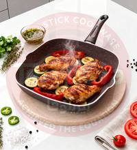 مصنوع من جرانيت قوي غير لاصق، مزوّد بمقبض عازل للحرارة لتسهيل التحكم أثناء الطهي، وقاعدة صلبة مستقرة تناسب المواقد الغازية والكهربائية على حد سواء.