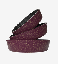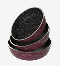 طقم صواني جرانيت بوردو فاخر بطلاء غير لاصق عالي الجودة، مناسب لكل أنواع المخبوزات. يتميز بتصميم متين وأنيق يمنحك أداء ممتاز في كل استخدام.