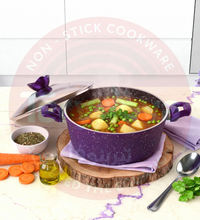 حلة جرانيت موف من تيرينوفا تجمع بين الرقي والأداء العملي في تصميم أنيق يضفي لمسة جمالية على مطبخك. بطبقة غير لاصقة متطورة تقلل الحاجة للزيت أو الزبدة، وتسهّل التنظيف حتى مع الاستخدام المستمر. مثالية للطهي اليومي وتحتفظ بجودتها لفترة طويلة مع ضمان لمدة عامين. متوفرة بأربع مقاسات مختلفة لتناسب جميع الاحتياجات.
