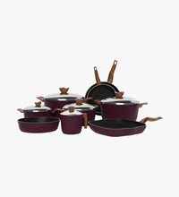 طقم تيرينوفا جرانيت 14 قطعة لون بوردو – حلل متعددة المقاسات مع مقالي وصينية وجريل لمطبخ متكامل