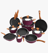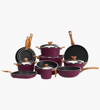 طقم حلل جرانيت تيرينوفا 18 قطعة لون بوردو – طقم طبخ متكامل بأحجام متعددة للمطبخ العصري