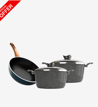 ووك جرانيت + حلة جرانيت مقاس 28 سم + حلة جرانيت مقاس 18 سم، اللون حسب المتوفر، مصنوعين من جرانيت عالي الجودة بسمك 5 مم، مع طبقة غير لاصقة تساعد على الطهي بدون التصاق وسهولة التنظيف.